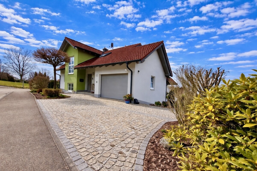 Die Immobilie befindet sich in ruhiger Wohnlage in Boos im Unterallgäu. Der Ort liegt rund zehn Kilometer nördlich von Memmingen und verbindet naturnahes Wohnen mit einer guten Infrastruktur des täglichen Bedarfs. Die Lage auf einem Hanggelände mit einmalig schöner Aussicht, was dem Objekt einen besonderen Wohnwert verleiht. Die Balkone und die Ausrichtung der Wohnbereiche unterstützen diesen Eindruck zusätzlich.