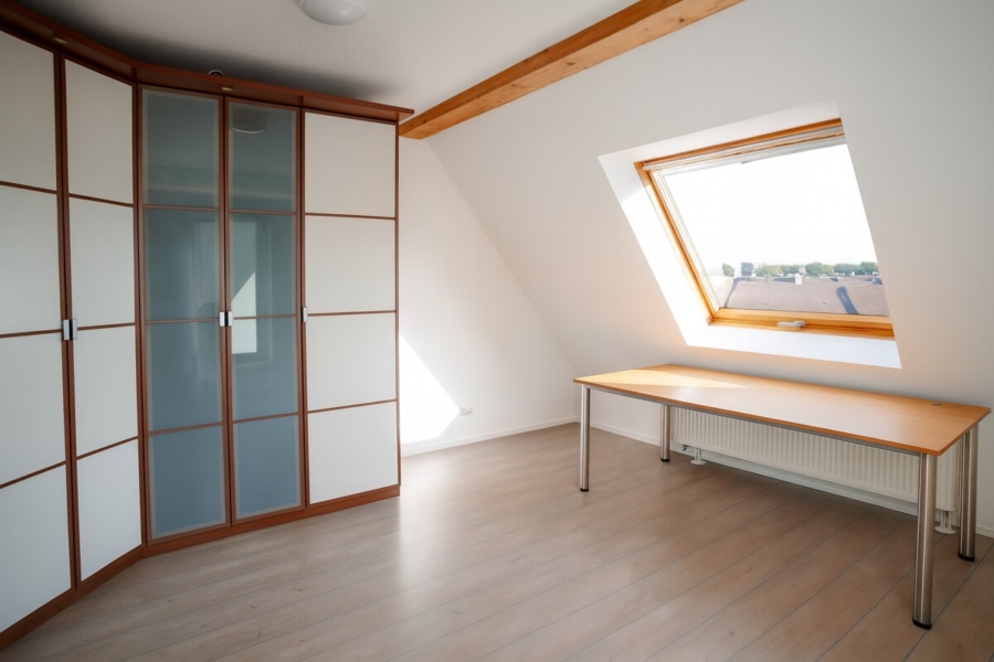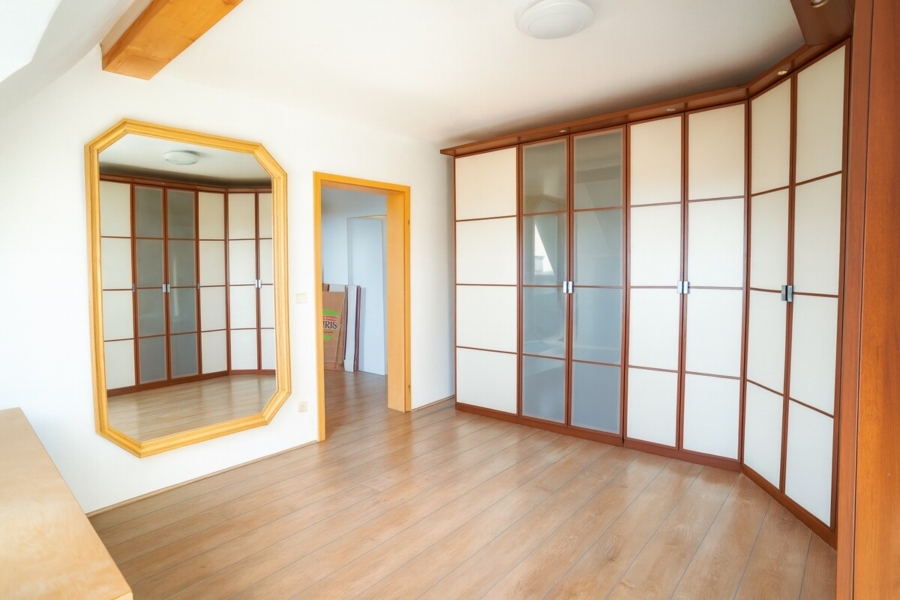 Über eine interne Treppe erschließt sich die darüberliegende Ebene mit ausgebauten Dachräumen. Dadurch entsteht eine attraktive Maisonette-Situation mit zusätzlicher wohnlich nutzbarer Fläche und großzügigem Raumgefühl.